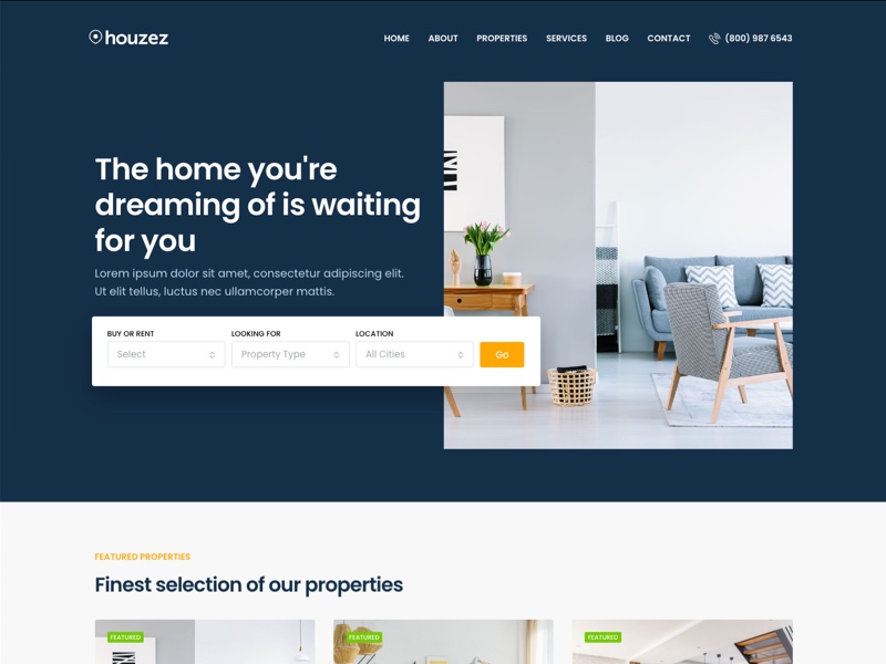 This menu tab features multiple search bar styles and placements built to help visitors easily find properties with precision and style.